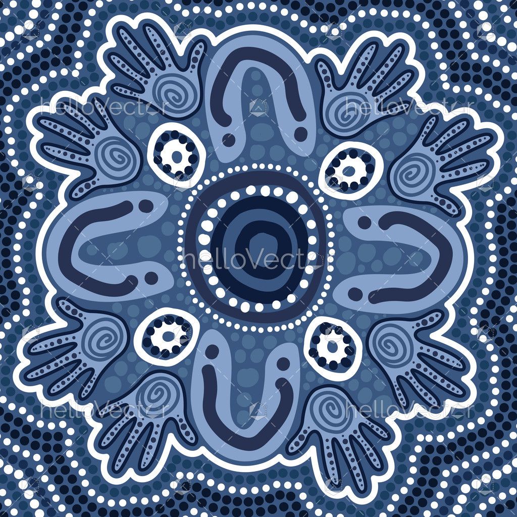 This is an image that uses small dots to create patterns and shapes inspired by the Aboriginal art of Australia. The background is a vector graphic, which means it can be scaled and edited without losing quality.