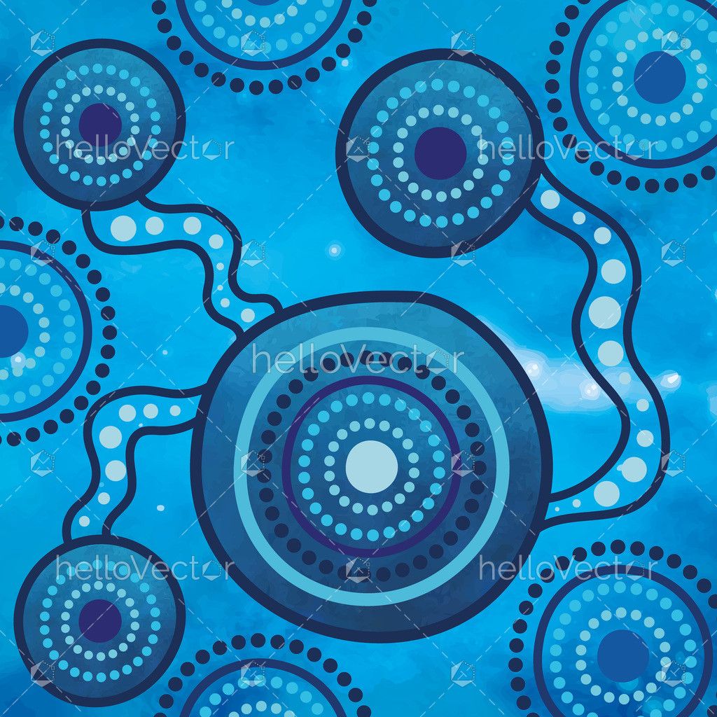 A modern abstract design featuring interconnected circular forms and dot patterns in soothing blue tones.