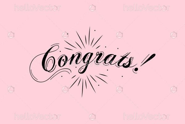An elegant hand-lettered “Congrats!” typography design with decorative rays and dots on a soft pink background, expressing happiness, success, and celebration for achievements and special occasions.