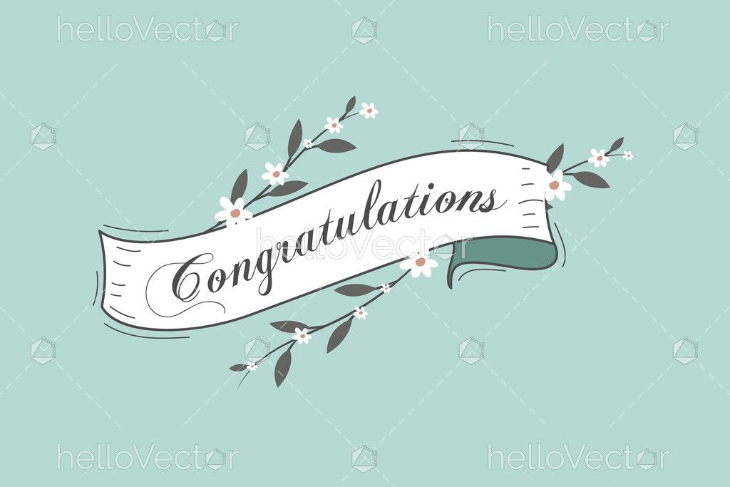 A soft pastel illustration featuring a flowing ribbon banner with the word “Congratulations” surrounded by delicate floral branches, perfect for expressing joy, appreciation, and celebration on special occasions.
