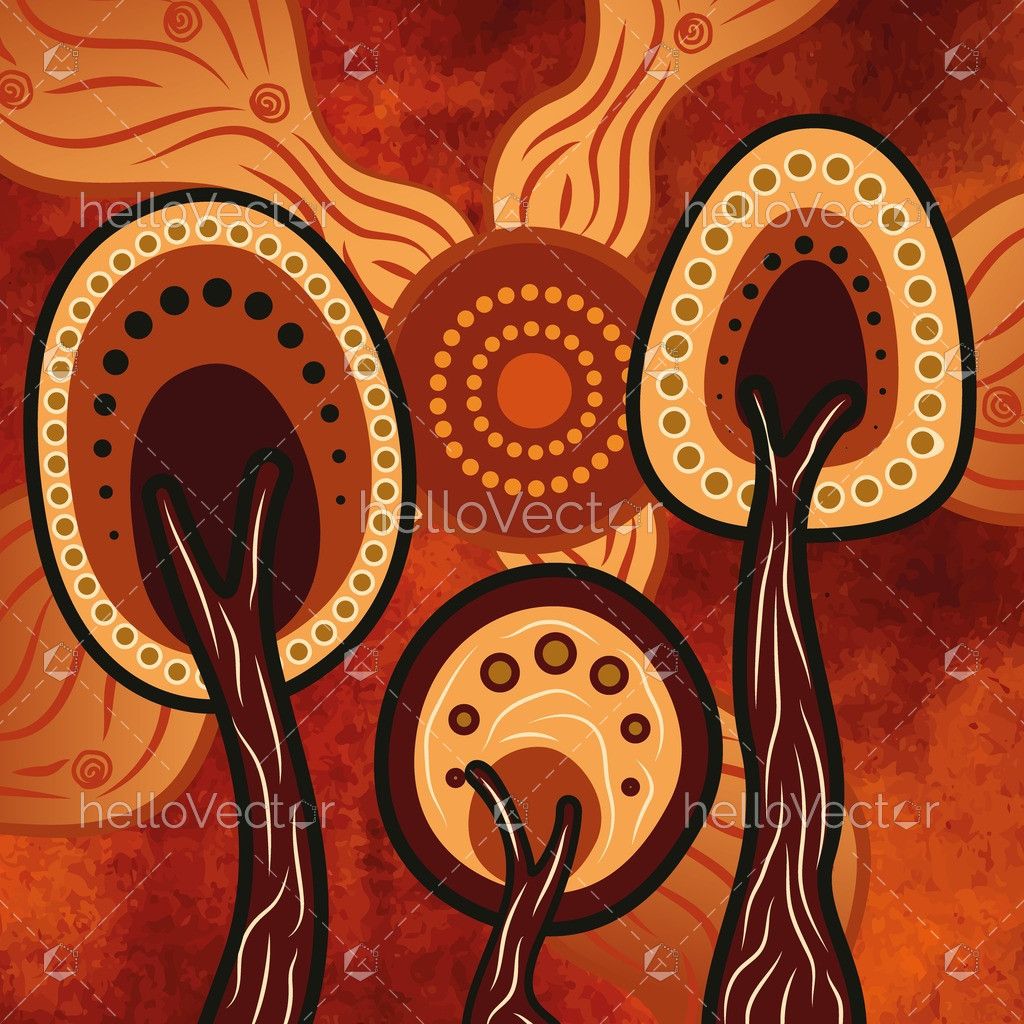 A warm-toned Aboriginal-inspired illustration featuring natural patterns.