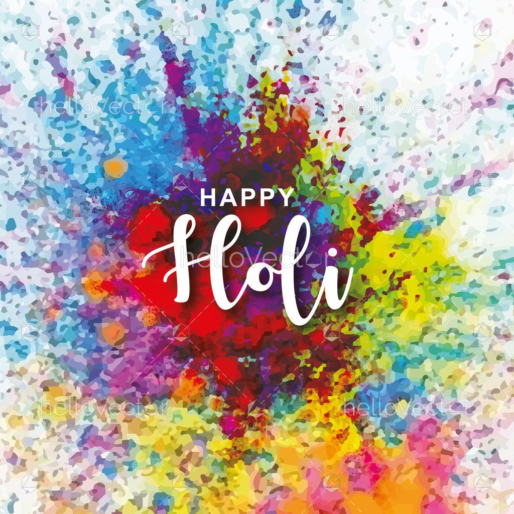 A vibrant abstract background filled with splashes of bright colors and the text “Happy Holi” in the center. The design represents the joyful spirit of the Holi festival, symbolizing happiness, unity, and the playful tradition of throwing colored powder. Perfect for Holi greeting cards, posters, social media posts, and festive banners.