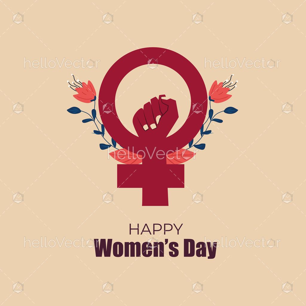 A bold and meaningful illustration featuring the female symbol with a raised fist at the center, decorated with floral elements, representing strength, equality, and empowerment. Perfect for Women’s Day celebrations, awareness campaigns, and motivational designs.