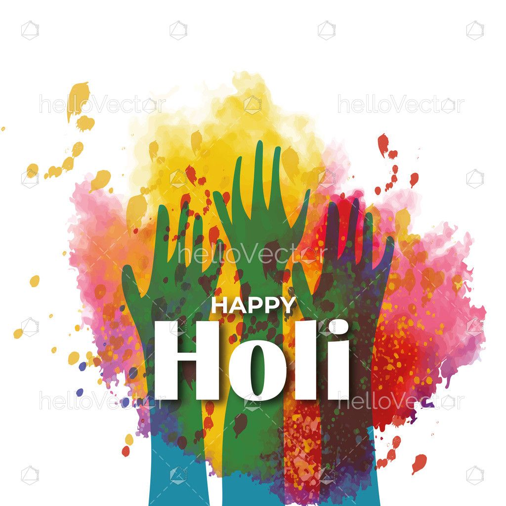 A lively Holi-themed illustration showcasing colorful handprints against a vibrant splash of hues, symbolizing togetherness, happiness, and the joyful spirit of the festival of colors.