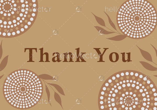 A warm, minimalist “Thank You” design featuring circular dot patterns and gentle leaf elements in natural brown tones, inspired by Indigenous-style artwork and conveying gratitude
