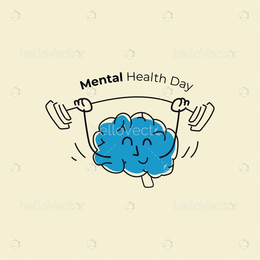 This playful illustration shows a brain lifting weights, symbolizing the importance of nurturing and strengthening mental health through self-care and mental exercises.