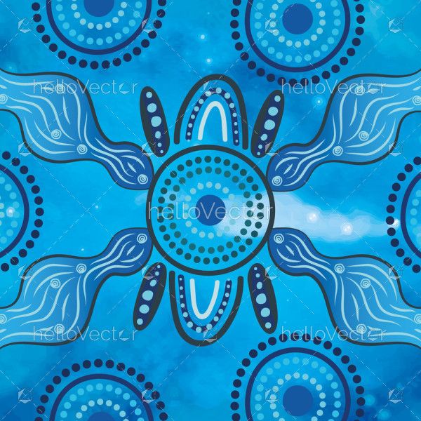 A balanced symmetrical design with flowing shapes and intricate dot painting in calming blue tones.