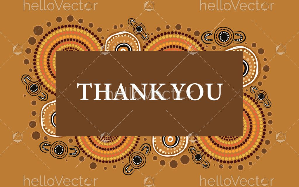 A warm thank-you card design featuring Aboriginal-inspired dot patterns in earthy tones, with a bold central message symbolizing respect, gratitude, and cultural harmony.