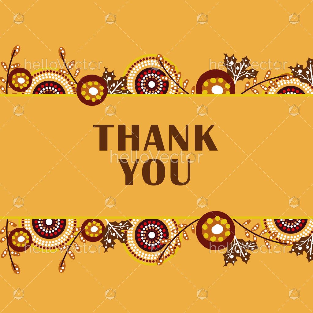 A vibrant thank-you design featuring traditional Aboriginal-inspired dot patterns, earthy colors, and decorative foliage borders, symbolizing gratitude, harmony, and cultural richness.